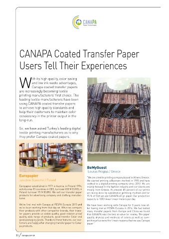 products for advertising company and clothing manufac- 95 % of that we use CANAPA 65 gr. paper. Our production