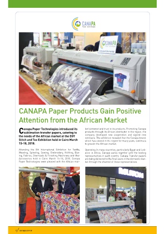 Csublimation transfer papers, catering to products through its African distributor in the region, the
